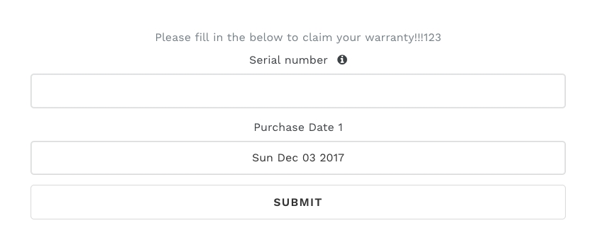 This is what the customer see and the link on the Claims admin or it can be access using the following url /forms/claim-warranty, here is what it look like without any configuration - see the Claims admin about how to customise the form