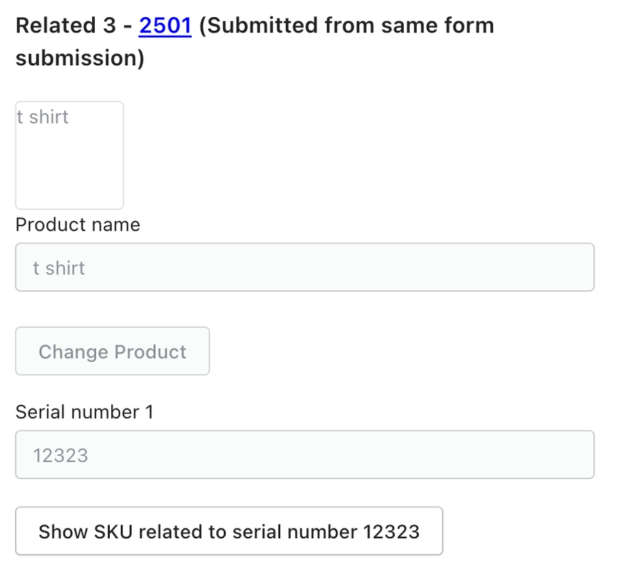 Another way to related two entries are via user action - on the frontend, it will show customer’s registered entries when the customer logged in, whenever the customer click on the make a claim for the specific registration, it will open the claim form and marked the new claim with the specific registration