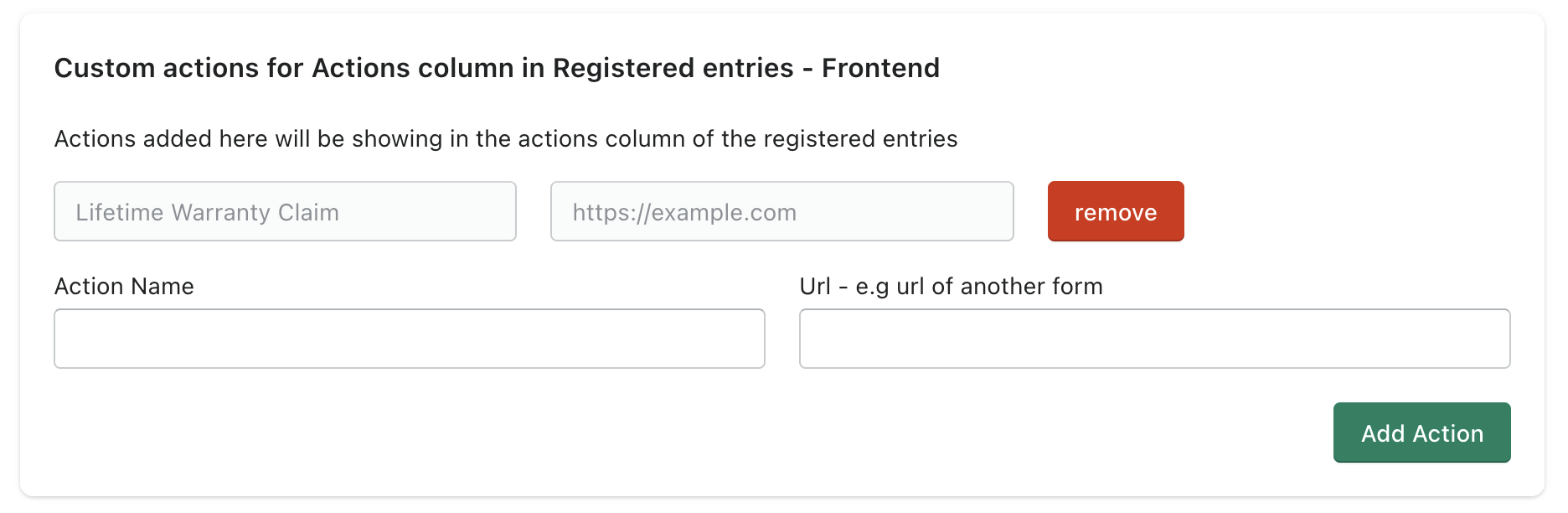 Once that's added, in the frontend registered entries, it will show the extra action
