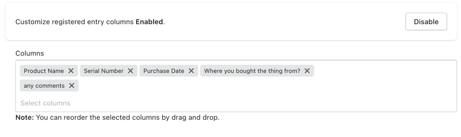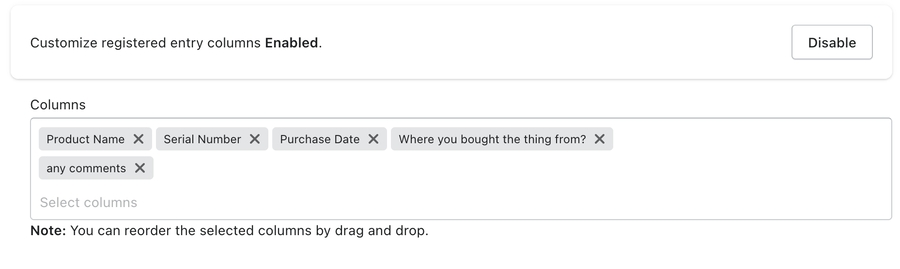 Customize registered entry columns