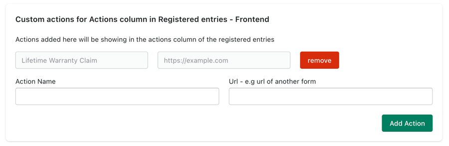 Add custom actions link for the registered products - e.g you can have life time warranty claim and other actions as you wish