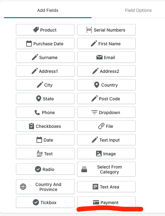 Once the payment integration is validated and saved, the payment field will appear in the Form's Design (normally the payment field is not available if there is no payment integration)
